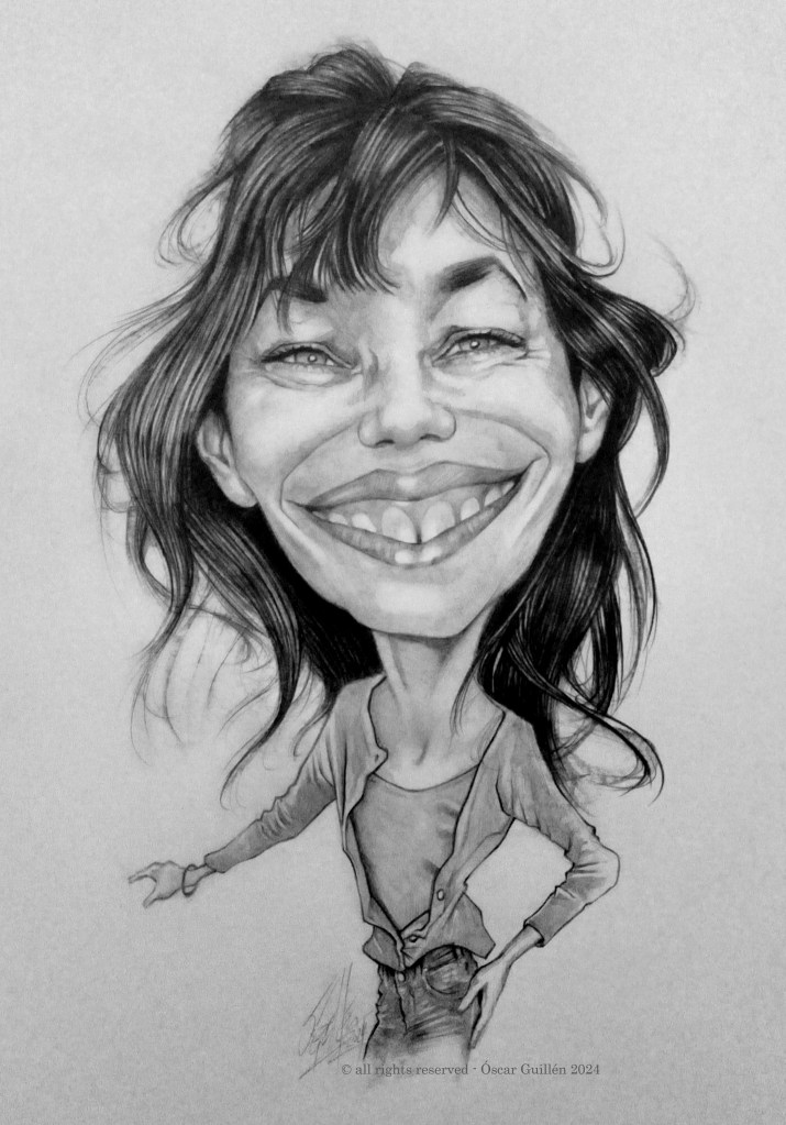 a caricature of the British and French actress and singer Jane Birkin (1946-2023)